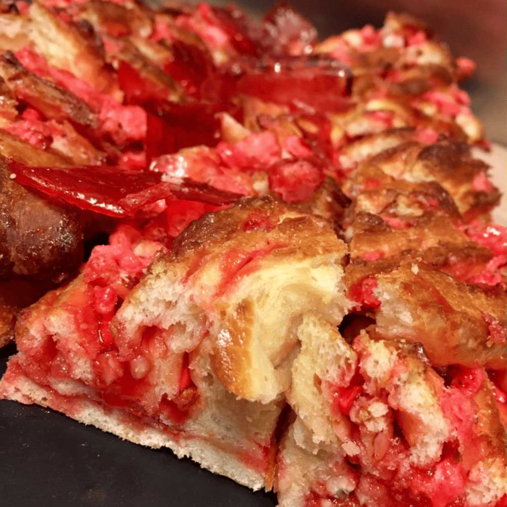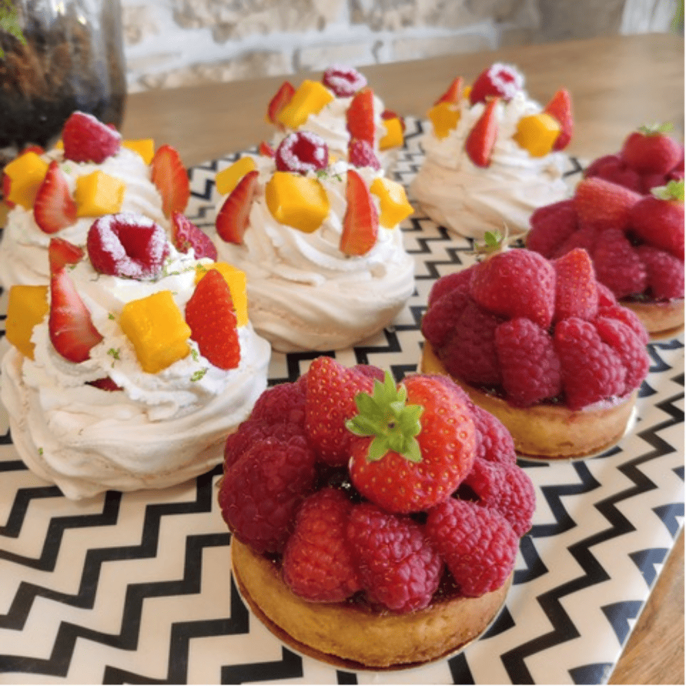 brioche pralines, moelleux au chocolat et tarte aux fruits